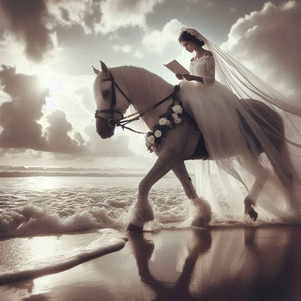 de toi Clara, en voiles blancs Cavalière diaphane aperçue dans le soir Apparition magique pour nous adolescents La cascade d’or de tes cheveux dans le soleil mêlée aux gerbes d’eau au bord …